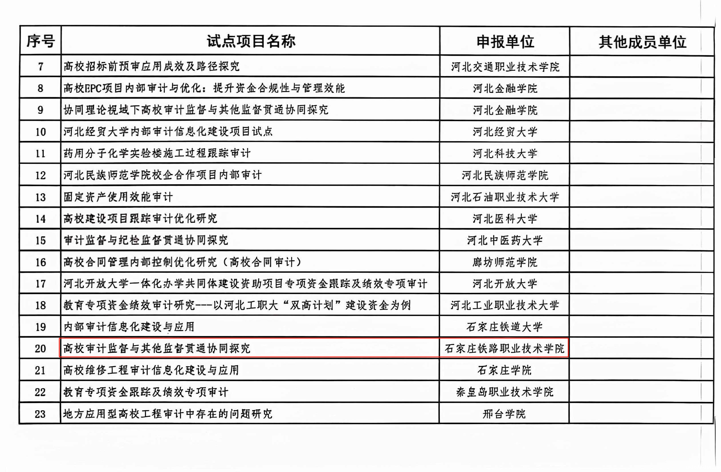 为深入贯彻2024年全国教育工作会议和二十届中央审计委员会第一次会议精神,进一步提升全省高校内部审计服务保障教育高质量发展的整体能力,河北省教育厅开展“全省高校内审试点项目”申报工作。学院审计处积极开展内审项目研究,改革创新审计模式,精心准备申报材料,凭借扎实的工作基础、创新的审计理念和完善的项目规划,在众多竞争高校中脱颖而出,成功获得两项立项。