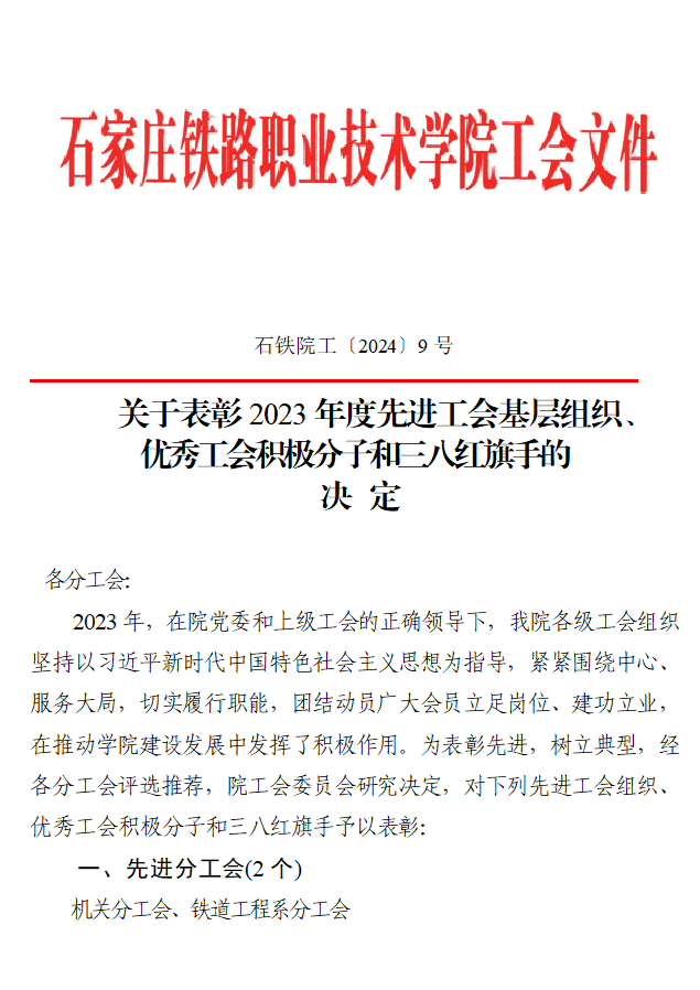 关于表彰2023年度先进工会基层组织、优秀工会积极分子和三八红旗手的决定
